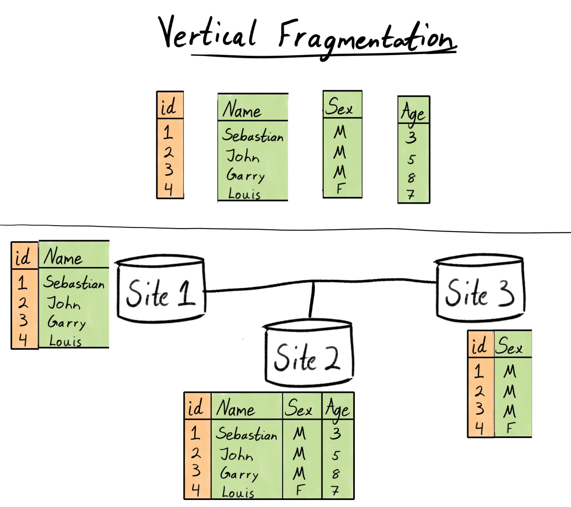 Vertical fragmentation design involves dividing a table into subsets of columns or attributes. In vertical fragmentation, the fields or columns of a table are grouped into fragments. In order to maintain reconstructiveness, each fragment should contain the primary key fields of the table. Vertical fragmentation can be used to enforce privacy of data.